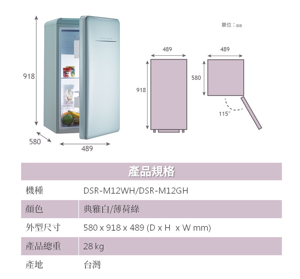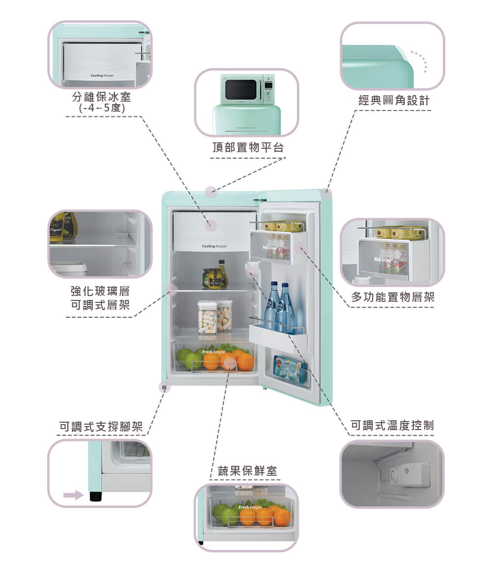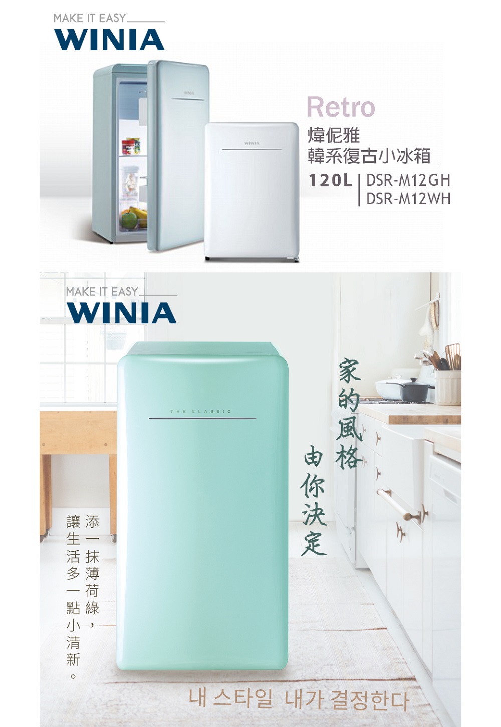 韓國大宇【WINIA煒伲雅】美型復古式冰箱120公升 DSR-M12GH 蘋果綠 獨立冷凍網美冰箱套房 小鮮綠
