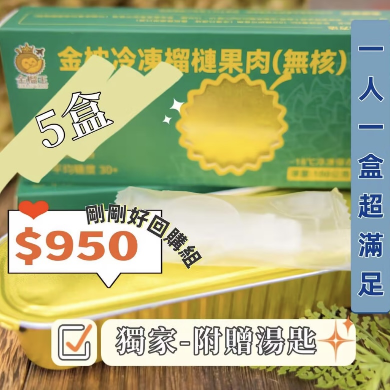 金榴王 冷凍榴槤果肉 (5盒)