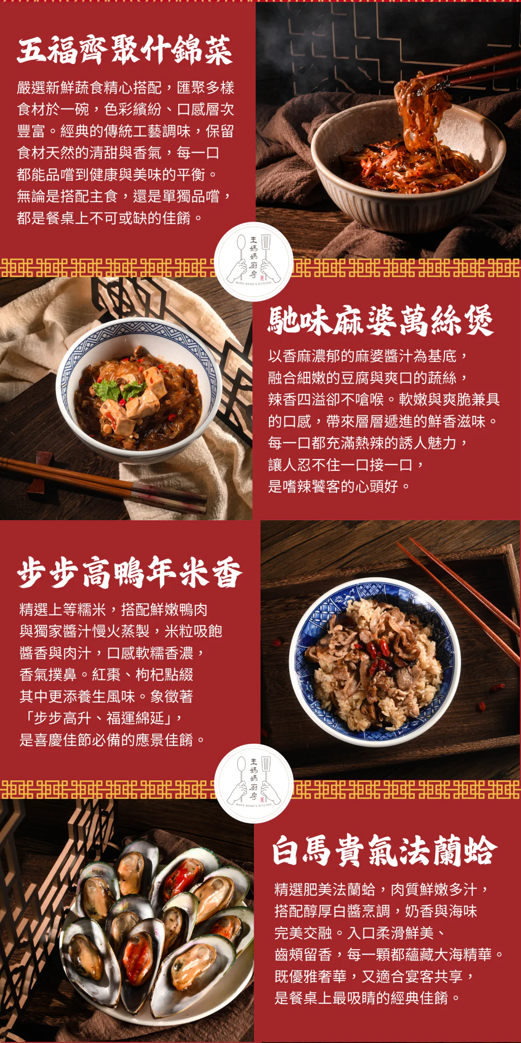 【成份】水、豬腳、排骨[排骨、酥炸粉(小麥澱粉、樹薯粉)、棕櫚油]、芋頭、筍片、白菜、豬肚、鳥蛋、水翅(水、食用海藻膠、食用明膠、梔子黄色素)、栗子、蒜頭、烏醋[水、釀造米酢、糖、鹽、胡蘿蔔汁、洋蔥汁、番茄汁、柳橙汁、焦糖色素(第一類)、香料]、雞汁[雞油、精鹽、冰糖、香料、酵母抽出物、粘稠劑(玉米糖膠)、複方結著劑(玉米糖膠、鹿角菜膠、氯化鉀、關華豆膠、麥芽糊精) ]、芥花油、紅蔥頭、香菇、冰糖、精鹽、冬蝦、醬油、複方調味劑(L-麩酸鈉、5'-次黄嘌吟核苷磷酸二鈉、5'-鳥嘌吟核苷磷酸二鈉、琥珀酸二鈉、胺基乙酸、DL-胺基丙酸)、蒜頭粉、調味劑(5'-次黄嘌吟核苷磷酸二鈉、5'-鳥嘌吟核苷磷酸二鈉)、蝦粉、肉精香料(糊精、中鏈三酸甘油酯、辛烯基丁二酸鈉澱粉、香料)、紅蔥膏[棕櫚油、天然香料、大豆卵磷脂、抗氧化劑(生育醇)]、肉精膏[豬肉、複方香料(香料、阿拉伯膠、焦糖色素(第一類)、大豆油)、鹽、葡萄糖、辛香料(蒜粉、洋蔥粉、黑胡椒粉、L-麩酸鈉、水、脂肪酸蔗糖酯、玉米糖膠、5'-次黄嘌吟核苷磷酸二鈉、5'-鳥嘌吟核苷磷酸二鈉、胺基乙酸、DL-胺基丙酸]、胡椒粉、洋蔥粉、雞肉香料[乳糖、糊精、香料(中鏈三酸甘油酯、香料、三乙酸甘油酯)、二氧化矽]、五香粉(小茴香、肉桂、八角、胡荽、丁香)、辣椒粉、抗氧化劑(混合濃縮生育醇)