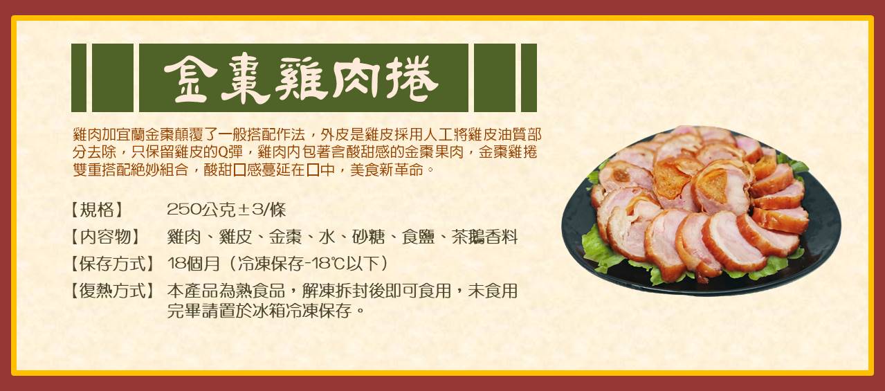 7)金棗雞肉捲250g