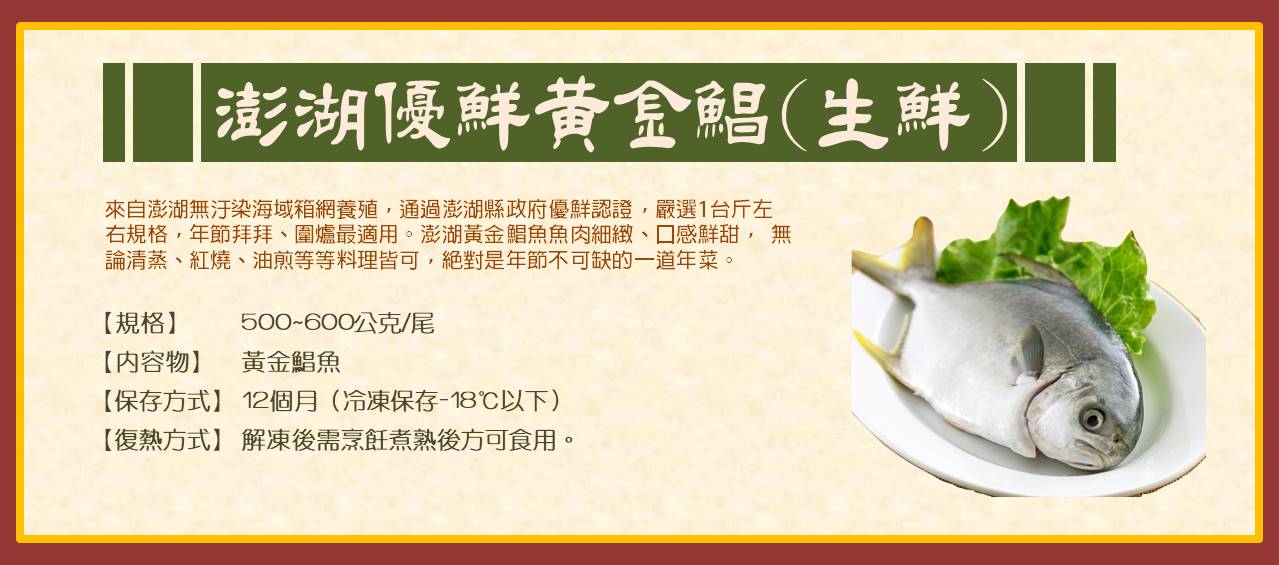 8)澎湖優鮮黃金鯧魚(生鮮)500~600g