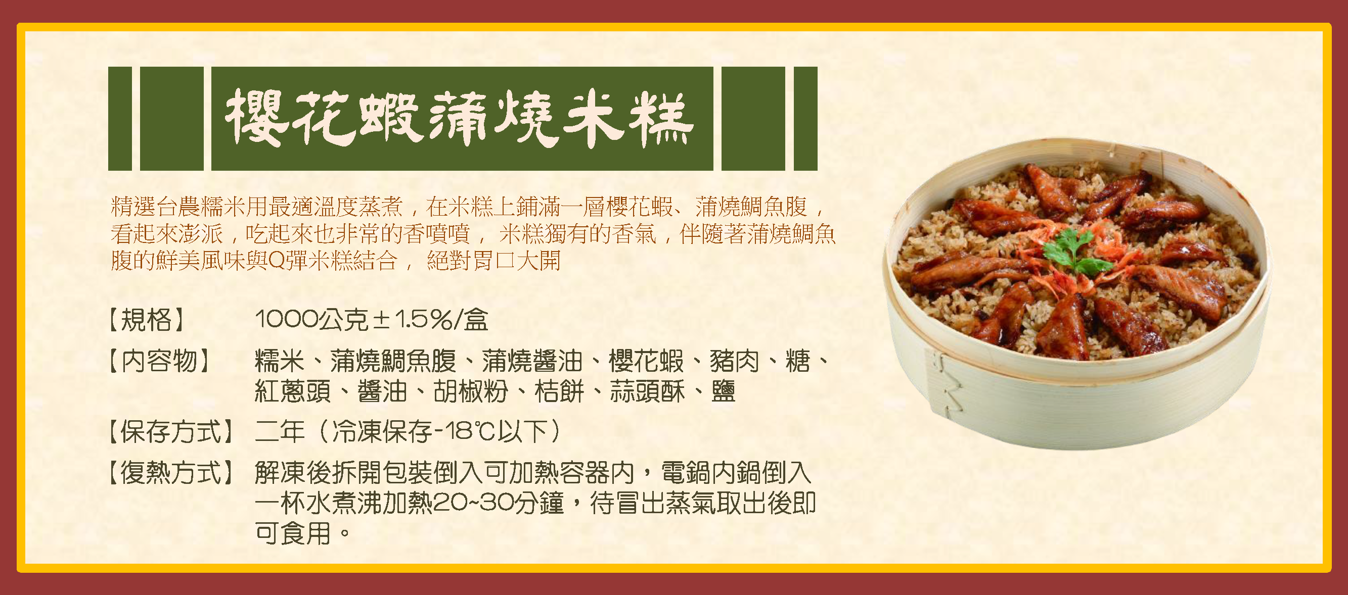5)櫻花蝦蒲燒米糕(附蒸籠)1000g