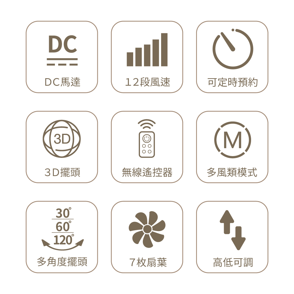 ●七枚柔和扇葉,十二段綿密風量