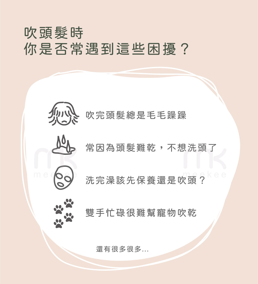 解放雙手,吹頭髮再也不流汗不手痠,負離子技術,減少毛躁呵護秀髮!