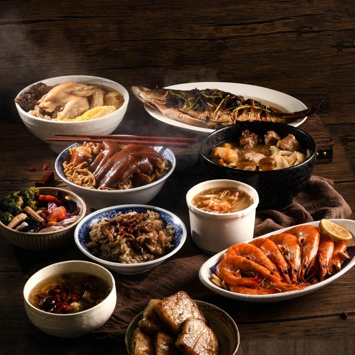 【成份】水、豬腳、排骨[排骨、酥炸粉(小麥澱粉、樹薯粉)、棕櫚油]、芋頭、筍片、白菜、豬肚、鳥蛋、水翅(水、食用海藻膠、食用明膠、梔子黄色素)、栗子、蒜頭、烏醋[水、釀造米酢、糖、鹽、胡蘿蔔汁、洋蔥汁、番茄汁、柳橙汁、焦糖色素(第一類)、香料]、雞汁[雞油、精鹽、冰糖、香料、酵母抽出物、粘稠劑(玉米糖膠)、複方結著劑(玉米糖膠、鹿角菜膠、氯化鉀、關華豆膠、麥芽糊精) ]、芥花油、紅蔥頭、香菇、冰糖、精鹽、冬蝦、醬油、複方調味劑(L-麩酸鈉、5'-次黄嘌吟核苷磷酸二鈉、5'-鳥嘌吟核苷磷酸二鈉、琥珀酸二鈉、胺基乙酸、DL-胺基丙酸)、蒜頭粉、調味劑(5'-次黄嘌吟核苷磷酸二鈉、5'-鳥嘌吟核苷磷酸二鈉)、蝦粉、肉精香料(糊精、中鏈三酸甘油酯、辛烯基丁二酸鈉澱粉、香料)、紅蔥膏[棕櫚油、天然香料、大豆卵磷脂、抗氧化劑(生育醇)]、肉精膏[豬肉、複方香料(香料、阿拉伯膠、焦糖色素(第一類)、大豆油)、鹽、葡萄糖、辛香料(蒜粉、洋蔥粉、黑胡椒粉、L-麩酸鈉、水、脂肪酸蔗糖酯、玉米糖膠、5'-次黄嘌吟核苷磷酸二鈉、5'-鳥嘌吟核苷磷酸二鈉、胺基乙酸、DL-胺基丙酸]、胡椒粉、洋蔥粉、雞肉香料[乳糖、糊精、香料(中鏈三酸甘油酯、香料、三乙酸甘油酯)、二氧化矽]、五香粉(小茴香、肉桂、八角、胡荽、丁香)、辣椒粉、抗氧化劑(混合濃縮生育醇)