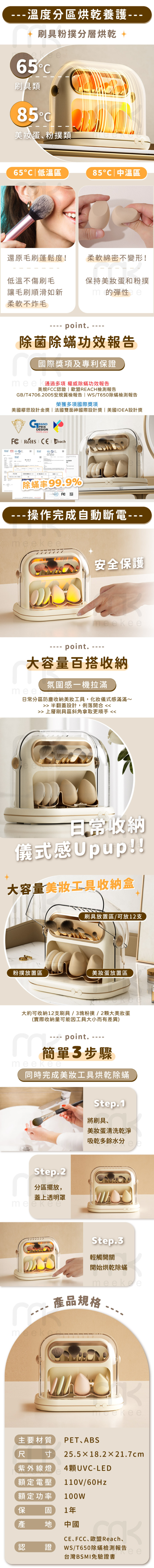 刷具粉撲兩種溫度分層烘乾,專業養護