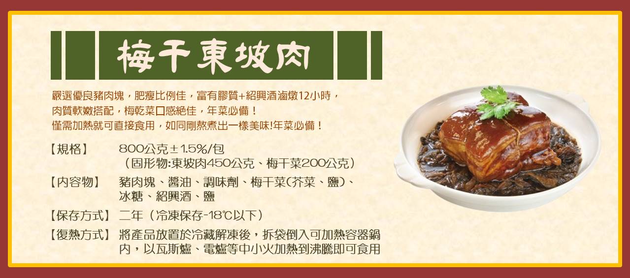 3) 梅干東坡肉800g(固形物650g)