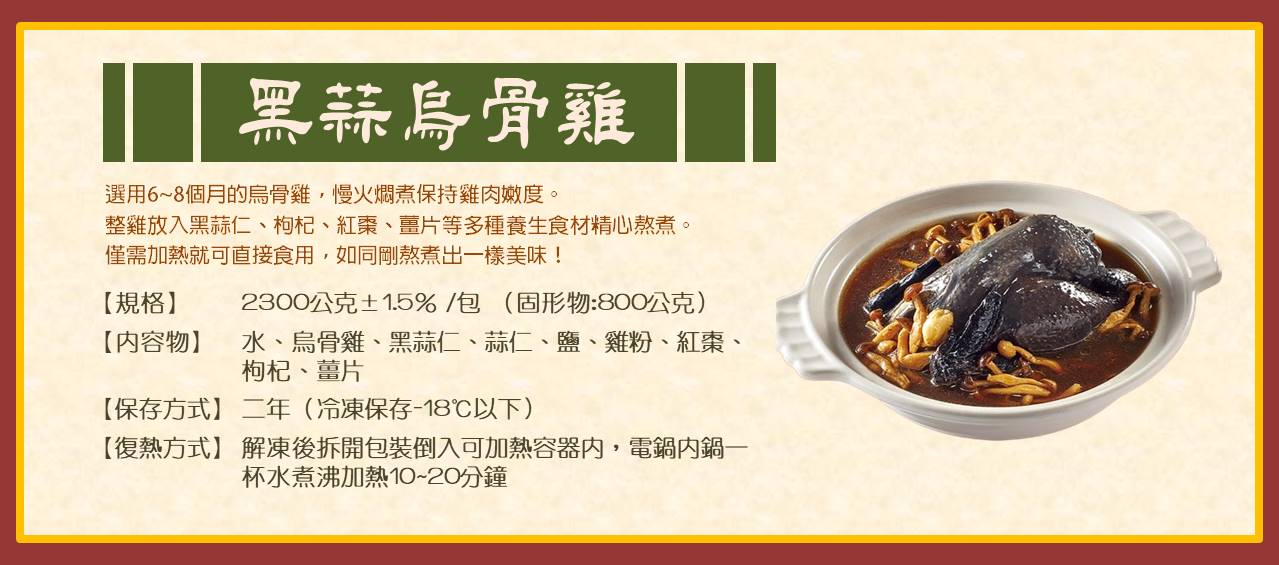 4) 黑蒜烏骨雞2200g(固形物800g)