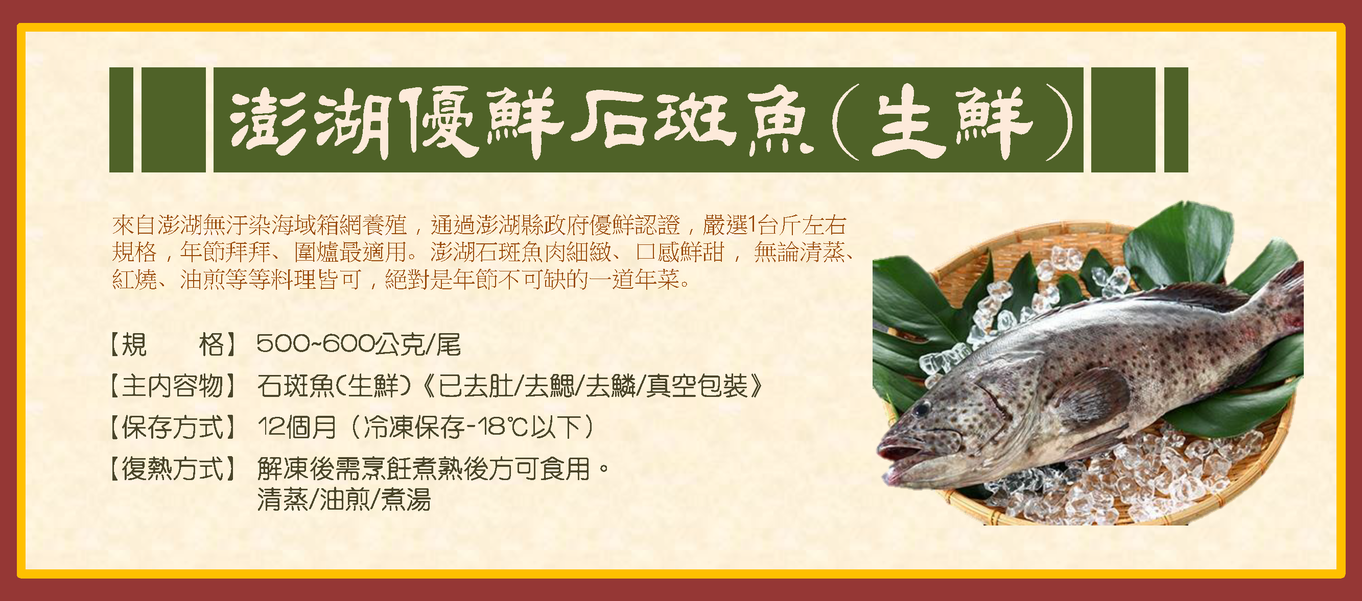 8) 澎湖優鮮石斑魚(生鮮)500~600g