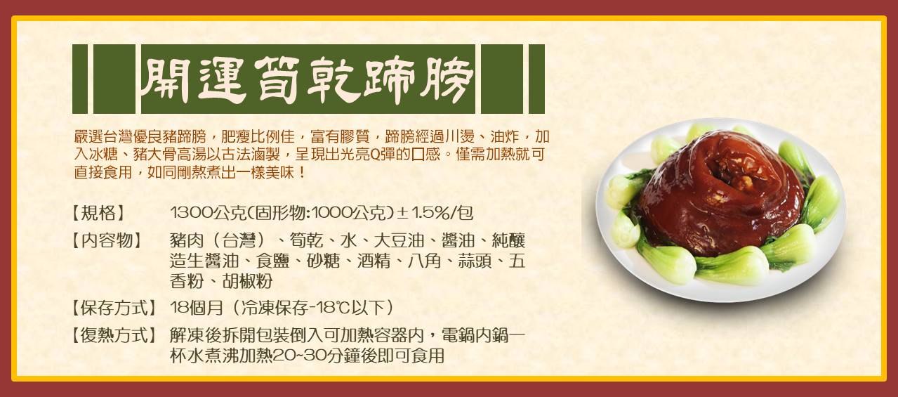 1)開運筍乾蹄膀1300g(固形物1000g)