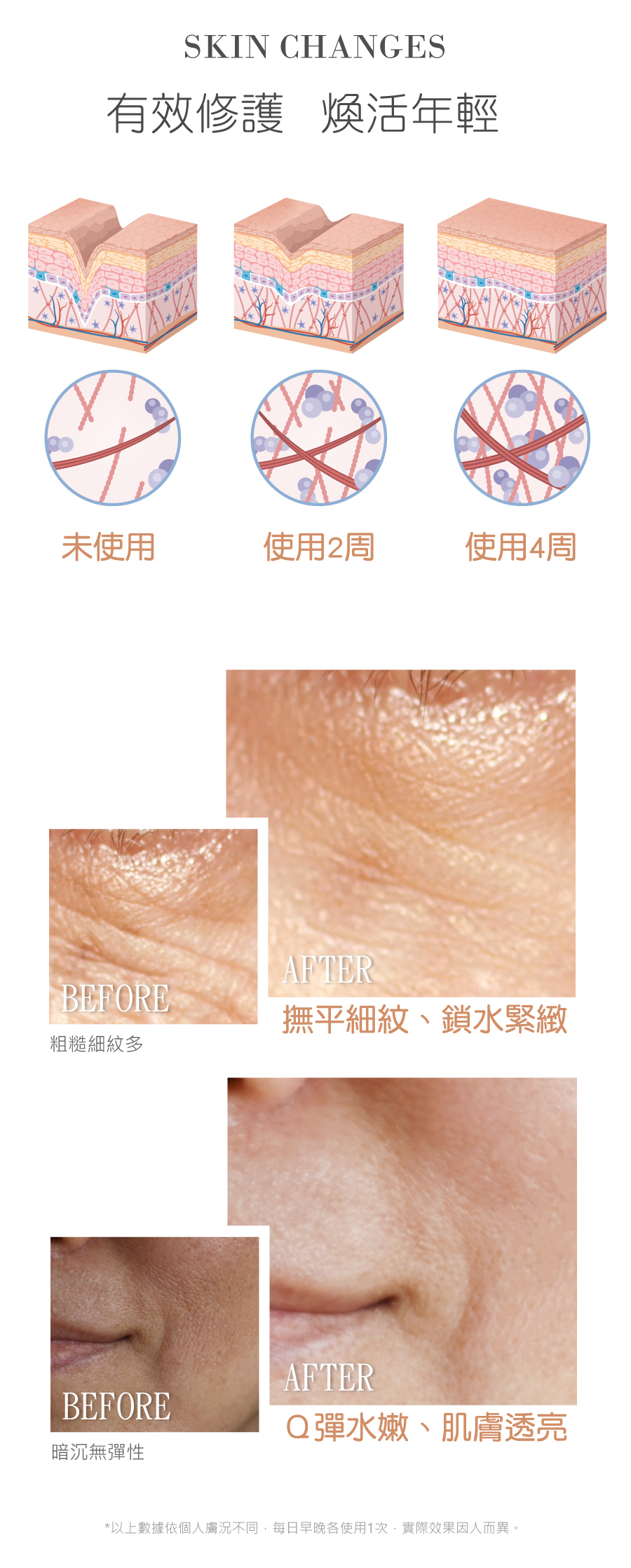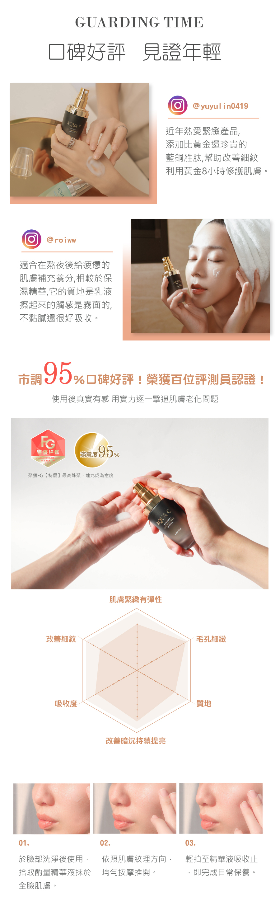 • 修護、抗老、淨化、緊緻 、彈潤。